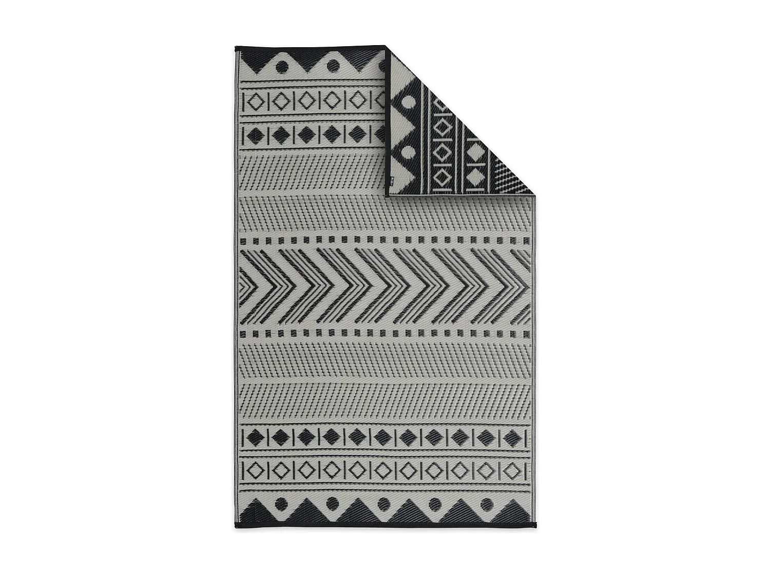 Tapis d'extérieur 120x180cm BAMAKO - Rectangulaire. motif ethnique noir / beige. jacquard. réversible. indoor / outdoor